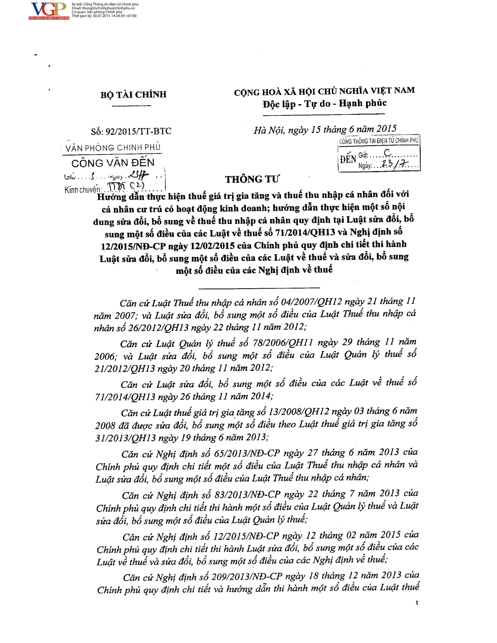THÔNG TƯ SỐ 92/2015 TT-BTC Ngày 15/06/2015 có hiệu lực từ ngày 30/7/2015 Hướng dẫn thuế thu nhập cá nhân, các quy định về thuế 27 tháng 10 năm 2025 • 9 lượt xem « Previous THÔNG TƯ SỐ 32/2025 TT-BTC ngày 31/05/2025 có hiệu lực từ ngày 01/6/2025 hướng dẫn hóa đơn, chứng từ NĐ 70/2025 NĐ-CP và sửa đổi, bổ sung một số điều NĐ 123/2020 NĐ-CP Next » THÔNG TƯ 96/2015 TT-BTC ngày 22/06/2015 có hiệu lực từ ngày 6/8/2015 hướng dẫn thuế thu nhập doanh nghiệp