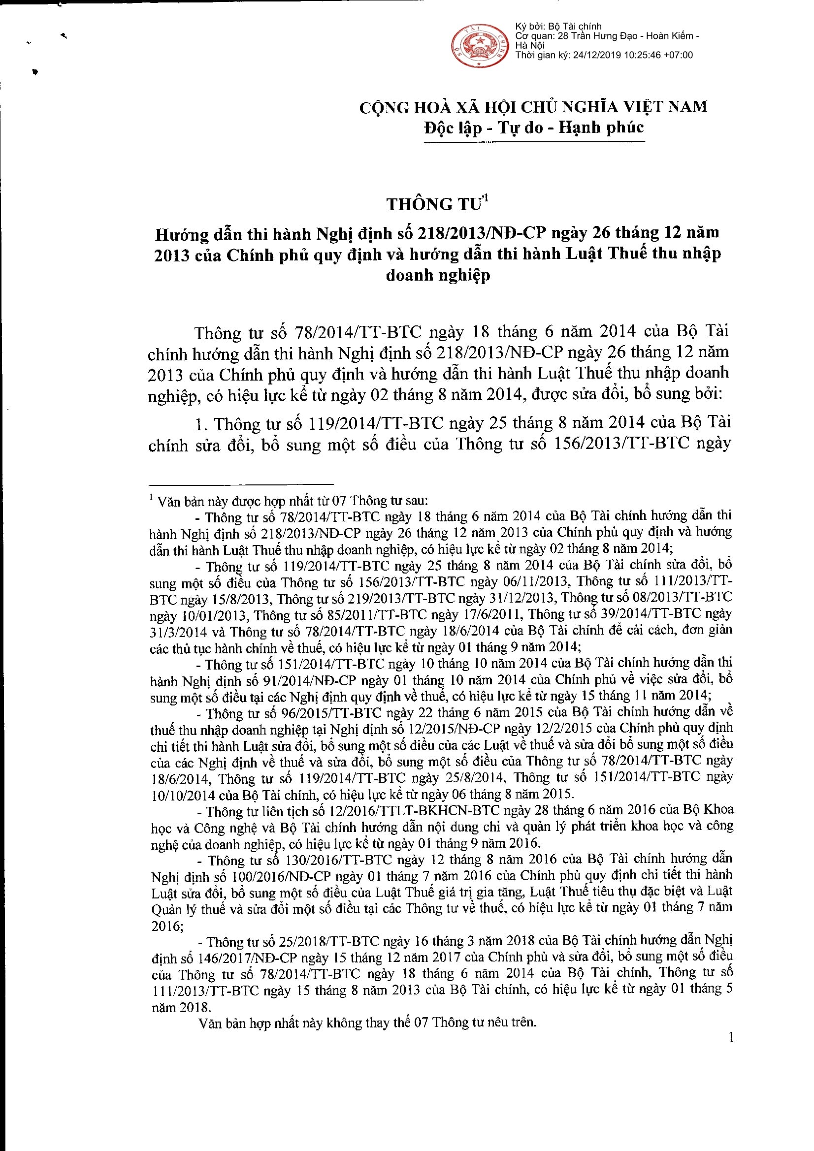 VĂN BẢN HỢP NHẤT SỐ 66/2019 VNHN-BTC ngày 19/12/2019 27 tháng 10 năm 2025 • 9 lượt xem « Previous THÔNG TƯ 96/2015 TT-BTC ngày 22/06/2015 có hiệu lực từ ngày 6/8/2015 hướng dẫn thuế thu nhập doanh nghiệp Next » VĂN BẢN HỢP NHẤT SỐ 68/2019 VNHN-BTC ngày 19/12/2019